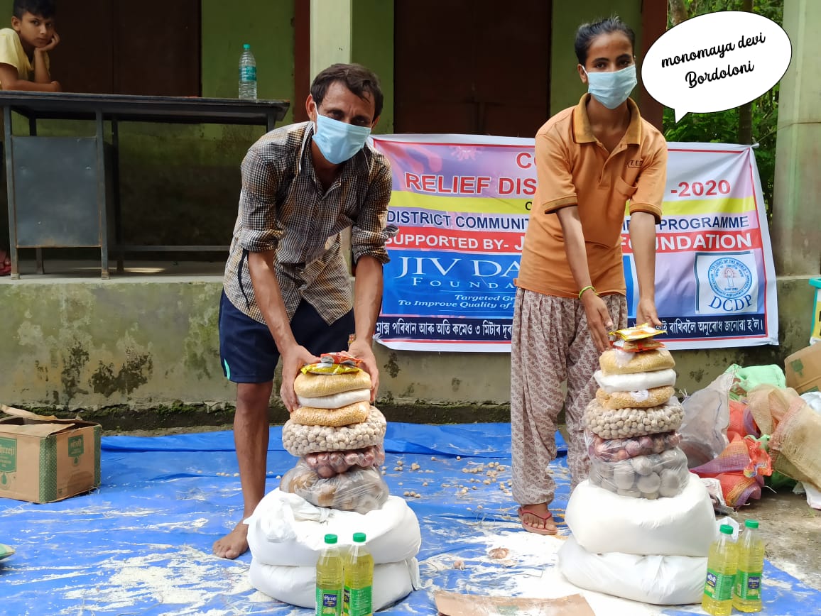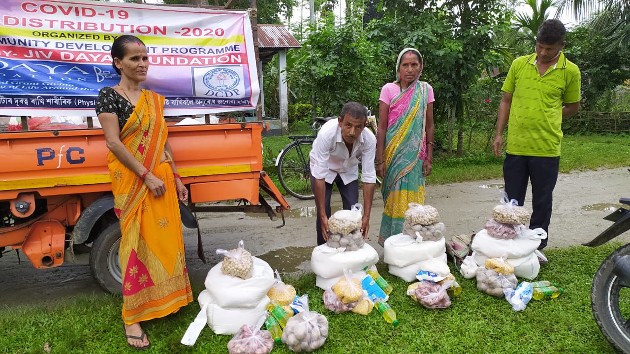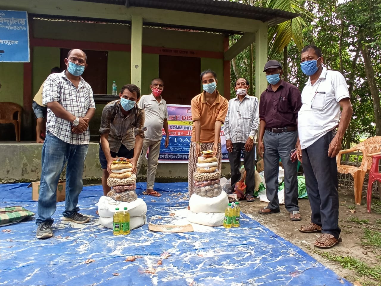 DCDP RESPONDED 220 FAMILIES COVERING 25 VILLAGES UNDER HELEM REVENUE CIRCLE OF BISWANATH DISTRICT IN ASSAM WITH DRY RATION PACKAGE- Rice, mung dal, chana Dal, Flour (Atta), Refined oil, Potatoes, Onions, Sugar, Soybeans, Salt, Turmeric powder and Chili powder to combat COVID-19 Pandemic. Distribution started on 9th September and completed on 11th September 2020.